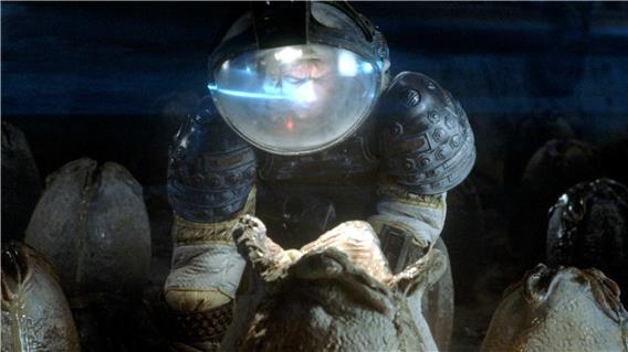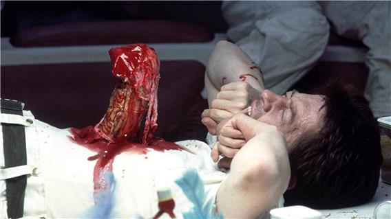Das Grauen, das in Form des titelgebenden Aliens das Raumschiff Nostromo heimsucht, hat seinen Ursprung in Kanes Brustkorb. In einer der denkwürdigsten Sequenzen des Films bricht das Alien aus dem zum Inkubator degradierten Kane (John Hurt) heraus und terrorisiert fortan die Crew um die Heldin Ripley.