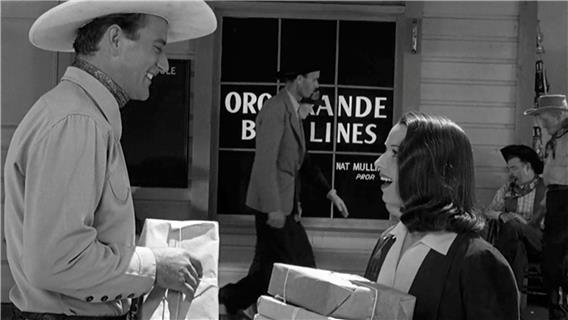 "Western fans unfamiliar with the cockeyed world of series westerns must make a few adjustments to Overland Stage Raiders, which takes place in a present-day west with trains and airplanes, but where everybody lives and behaves as if it were 1888. Our heroes ride horses everywhere, rarely at a slower pace than a gallop. The 'raiders' hold up a stagecoach, but also an ordinary 1930s touring bus. The key scene to excite the kiddies must be Stony Brooke cheerfully telling his pals to get ridin', whereupon they all leap on their steeds and peel out as if doing the quarter finals at a drag strip. The 'let's ride!' action is synonymous with 'surf's up!' in a beach movie.