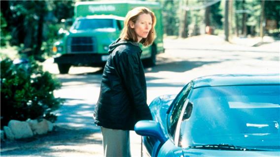 Für The Deep End (2001) von Scott McGehee und David Siegel, der Tilda Swinton eine Golden-Globe-Nominierung einbringt, lässt sie sich ihre langen Haare abschneiden und legt ihre Aura unnahbarer Grösse ab wie ein unpassendes Kostüm. Nun ähnelt sie einer Mittelstands-Hausfrau und -Mutter in mittleren Jahren, deren angespannte Züge den Stress des bürgerlichen Alltags verraten: einkaufen, Opa versorgen, die Kinder zum Baseball und zum Ballett bringen. The Deep End ist ein Thriller, aus dem Swinton das Psychogramm einer Frau destilliert, deren Leben ausser Kontrolle gerät, was sie mit immer grösserer Kraftanstrengung quittiert. Margaret presst wieder und wieder die schmalen Lippen zusammen, um ihr Gesicht in den Griff zu kriegen. Und man meint, ihren Atem zu spüren, den Druck auf der Brust, wenn sie mit halb geöffnetem Mund um Worte ringt.» (Martina Knoben, Du, November 2010)