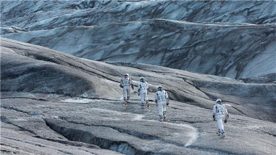 Mit: Matthew McConaughey (Cooper), Anne Hathaway (Dr. Amelia Brand), David Gyasi (Romilly), Wes Bentley (Doyle), Matt Damon (Dr. Mann), Michael Caine (Professor Brand), Mackenzie Foy (Murphy Cooper, 10 Jahre), Jessica Chastain (Murphy Cooper, Erwachsene), Ellen Burstyn (Murphy Cooper, 90 Jahre), Timothée Chalamet (Tom Cooper, 15 Jahre), Casey Affleck (Tom Cooper, Erwachsener)