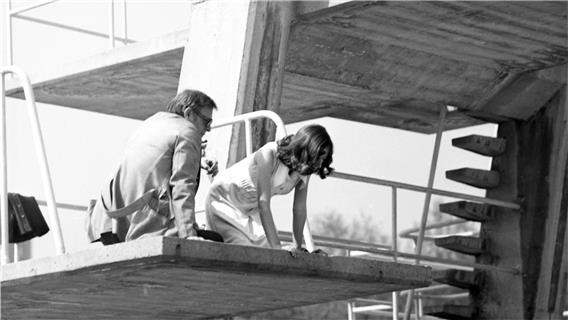 «Aus dem Zusammentreffen dreier ganz unterschiedlicher Menschen entsteht eine unerwartete Freundschaft: Die junge Bela wird an ihrem Schulabschlussball sitzengelassen und findet sich im Abendkleid auf dem Sprungbrett des Schwimmbads wieder – wie auch der etwa 40-jährige Architekt Apostol. Die beiden nähern sich vorsichtig an, zu ihnen stösst Apostols Freund Buffo, ein Künstler, der auf Konventionen pfeift. Währenddessen filmt ein Fernsehteam eine Gruppe von ehemaligen Partisanen im Schwimmbad, ohne wirklich an deren Lebensgeschichte interessiert zu sein. In der Begegnung der Generationen treffen abweichende Erfahrungswelten aufeinander und zeigen sich Risse einer Gesellschaft, die nach Orientierung zwischen den Werten von gestern und denen von heute sucht. (…) Binka Scheljaskowa (1923–2011) war die erste Spielfilmregisseurin Bulgariens. Mit den sieben Spiel- und zwei Dokumentarfilmen, die sie zwischen 1957 und 1988 drehte, war sie wiederholt Zensur und Verboten ausgesetzt und musste sich Freiräume für ihr filmisches Werk stets neu erarbeiten. Als kühne Filmemacherin, die ihre humanistischen Werte kompromisslos verteidigte, schuf sie so poetische wie metaphorische Bilder.» (Kino Arsenal, Nov 2022)