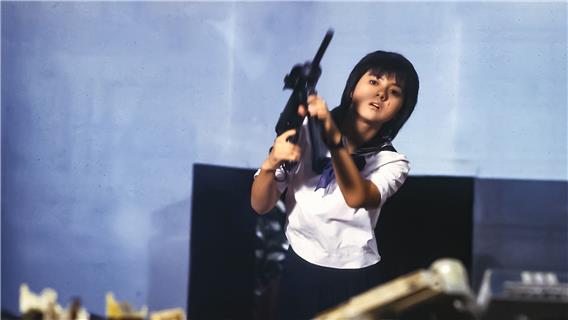 «Basierend auf einem beliebten Jugendroman von Jiro Akagawa, konzentriert sich Sailor Suit and Machine Gun auf das Leben der Schülerin Izumi Hoshi (gespielt von Hiroko Yakushimaru, dem Idol des Kadokawa-Konzerns), welche die Macht über einen zerfallenden Yakuza-Clan erbt und kopfüber in eine Gangsterfehde hineingeworfen wird. Im Kampf um Respekt in einer erwachsenen Welt übernimmt Izumi das Kommando und fordert ein gewalttätiges Drogenkartell heraus, das ihren Clan bedroht. Mit Somais geschickter Regie, einem Hit-Titelsong und Yakushimaru selbst – gekleidet in ihrer kultigen Matrosenuniform – hatte Sailor Suit and Machine Gun alle Voraussetzungen für einen Kassenschlager und entwickelte sich zu einem kulturellen Phänomen, das Yakushimaru zu grosser Popularität verhalf und den Zeitgeist Japans in den 80er-Jahren perfekt einfing.» (Japan Society, Apr 2023)