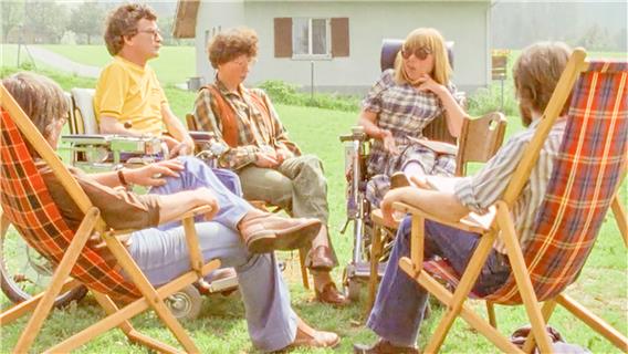 Eine Gruppe körperlich behinderter Schweizer:innen trifft sich von 1974 bis 1976 regelmässig in einem Ferienlager im Emmental und dreht über mehrere Jahre gemeinsam einen Film. Die Kamera begleitet vier Protagonist:innen (Jules Burgener, Christoph und Ursula Eggli und Therese Zemp) bei ihren Diskussionen, alltäglichen bzw. künstlerischen Aktivitäten sowohl im Ferienlager als auch in den Wohnheimen bzw. Wohngemeinschaften, wo sie leben. Die Porträts folgen jeweils der gleichen narrativen Struktur: Sie beginnen mit einer Aussage über die Sexualität im Ferienlager, gefolgt von längeren Interviews mit den Protagonist:innen, Alltagsszenen im Ferienlager und in den Heimen. Diese zeigen sowohl die Pflegearbeit als auch die kreative Arbeit und schliesslich das Scheitern bzw. das Gelingen der Gemeinschaftsbildung. (ml/lwa)