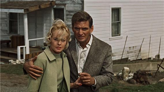 Mit: Tippi Hedren (Melanie Daniels), Rod Taylor (Mitch Brenner), Jessica Tandy (Lydia Brenner), Suzanne Pleshette (Annie Hayworth), Veronica Cartwright (Cathy Brenner), Charles McGraw (Sebastian Sholes, Fischer im Diner), Ethel Griffies (Mrs. Bundy, die Ornithologin), Ruth McDevitt (Mrs. MacGruder, Verkäuferin in der Tierhandlung), Lonny Chapman (Deke Carter, Koch des Diners), Malcolm Atterbury (Dep. Al Malone), Alfred Hitchcock (Mann mit zwei weissen Terriern)