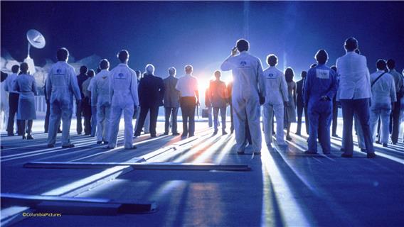 «Regisseur Spielberg nimmt für sich in Anspruch: "Mein Film versucht, sich mit der UFO-Frage ernsthafter zu beschäftigen, als es die US-Regierung während der letzten drei Jahrzehnte getan hat." Aber diese Ernsthaftigkeit meint nicht etwa wissenschaftlich-technische Analysen; sie meint, dass Spielberg die Menschen ernst nimmt, die UFOs gesehen haben wollen die - vielleicht? - UFOs begegnet sind, weil sié ihnen begegnen wollten. Ein Film über "Begegnungen der dritten Art" (d. h. direkter Kontakt eines Menschen mit Ausserirdischen) ist für Spielberg auch und vor allem ein Anlass für die Analyse der Menschen, die in den UFOs eine neue Transzendenz suchen und finden. Entsprechend gerät ihm auch etwa die Figur des Roy Neary viel präziser und lebendiger als die des Wissenschafters Lacombe.