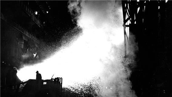 1950 drehte Franju En passant par la Lorraine, (…) einen fesselnden 32-Minuten-Film über ein grosses Stahlwerk (…) an der Saar. Der Film sollte Guy Monnets Plan zur Modernisierung der französischen Industrie im Rahmen der Europäischen Gemeinschaft für Kohle und Stahl feiern, aber Franju zeigte das Stahlwerk als hässlichen Eingriff in die idyllische Landschaft, und das Drehbuch beschreibt wie in Le sang des bêtes sehr sachlich die von den Hochöfen verursachte Umweltverschmutzung und Unfälle, bei denen Arbeiter ums Leben kommen oder fürs Leben gezeichnet sind.» (Erih.net)