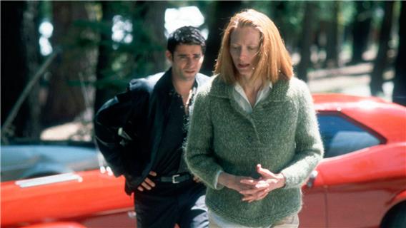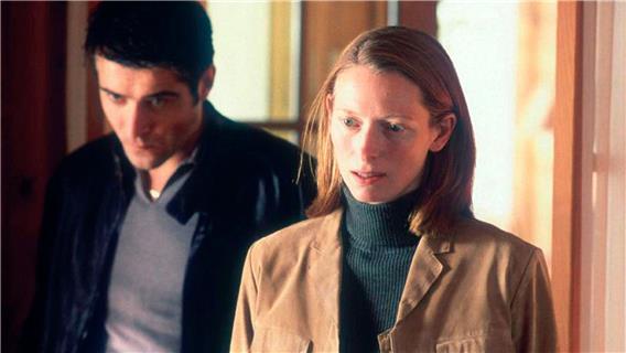 Für The Deep End (2001) von Scott McGehee und David Siegel, der Tilda Swinton eine Golden-Globe-Nominierung einbringt, lässt sie sich ihre langen Haare abschneiden und legt ihre Aura unnahbarer Grösse ab wie ein unpassendes Kostüm. Nun ähnelt sie einer Mittelstands-Hausfrau und -Mutter in mittleren Jahren, deren angespannte Züge den Stress des bürgerlichen Alltags verraten: einkaufen, Opa versorgen, die Kinder zum Baseball und zum Ballett bringen. The Deep End ist ein Thriller, aus dem Swinton das Psychogramm einer Frau destilliert, deren Leben ausser Kontrolle gerät, was sie mit immer grösserer Kraftanstrengung quittiert. Margaret presst wieder und wieder die schmalen Lippen zusammen, um ihr Gesicht in den Griff zu kriegen. Und man meint, ihren Atem zu spüren, den Druck auf der Brust, wenn sie mit halb geöffnetem Mund um Worte ringt.» (Martina Knoben, Du, November 2010)