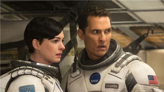Mit: Matthew McConaughey (Cooper), Anne Hathaway (Dr. Amelia Brand), David Gyasi (Romilly), Wes Bentley (Doyle), Matt Damon (Dr. Mann), Michael Caine (Professor Brand), Mackenzie Foy (Murphy Cooper, 10 Jahre), Jessica Chastain (Murphy Cooper, Erwachsene), Ellen Burstyn (Murphy Cooper, 90 Jahre), Timothée Chalamet (Tom Cooper, 15 Jahre), Casey Affleck (Tom Cooper, Erwachsener)