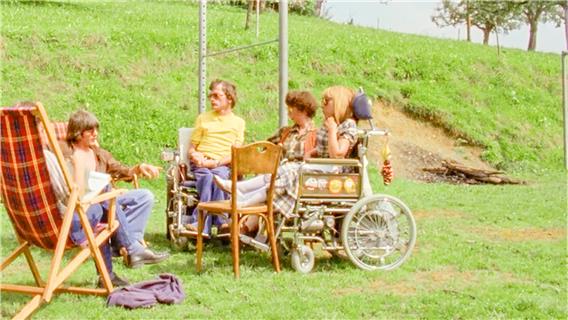 Eine Gruppe körperlich behinderter Schweizer:innen trifft sich von 1974 bis 1976 regelmässig in einem Ferienlager im Emmental und dreht über mehrere Jahre gemeinsam einen Film. Die Kamera begleitet vier Protagonist:innen (Jules Burgener, Christoph und Ursula Eggli und Therese Zemp) bei ihren Diskussionen, alltäglichen bzw. künstlerischen Aktivitäten sowohl im Ferienlager als auch in den Wohnheimen bzw. Wohngemeinschaften, wo sie leben. Die Porträts folgen jeweils der gleichen narrativen Struktur: Sie beginnen mit einer Aussage über die Sexualität im Ferienlager, gefolgt von längeren Interviews mit den Protagonist:innen, Alltagsszenen im Ferienlager und in den Heimen. Diese zeigen sowohl die Pflegearbeit als auch die kreative Arbeit und schliesslich das Scheitern bzw. das Gelingen der Gemeinschaftsbildung. (ml/lwa)